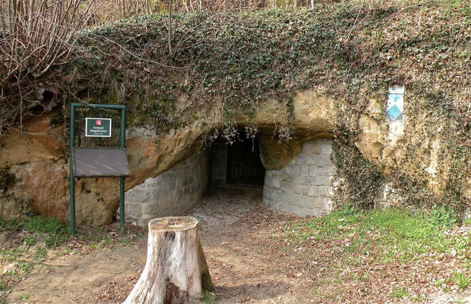 یکی از ورودی‌های این مجموعه که با رنگ سبز استتار شده و بخشی از آن زیر خاک پنهان است، در تصویر دیده می‌شود. این تونل‌ها به کارگاه‌ها، انبارها، مولدهای برق و خوابگاه‌های سربازان مجهز بودند. حتی ایستگاه‌های قطار زیرزمینی نیز در آن‌ها وجود داشت؛ بسیاری از گذرگاه‌ها دارای ریل بودند تا قطارهای حامل سربازان، سلاح‌ها و تدارکات را میان پناهگاه‌ها جابه‌جا کنند. این مجموعه را «شهر زیرزمینی مخفی آلمان نازی» توصیف کرده‌اند.